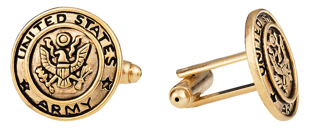 This is a brilliant cuff link set that is symbolic of the United States Army. The Army is one of the greatest military organizations in the world and has been protecting this glorious country for centuries. It only makes sense that this cuff link set would feature a great golden tone to it. This -inch circular cuff link set features the Army symbol in the middle and the name of the organization on its body too. This is a cuff link set that is just as strong and beautiful as the Army itself.
