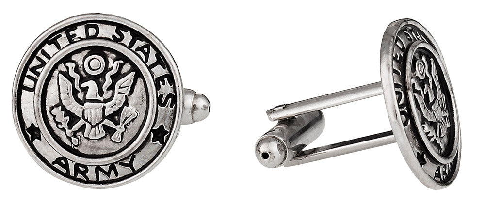 Are you a member of the United States Army who wants to show people that youre associated with the worlds greatest military organization? Maybe you know an Army member who needs something for a formal outfit. Either way, this rhodium silver cuff link set is a great set to check out. This is made with a bright sheen that has been brushed to create an antique look. This can fit in well with most outfit colors. The official Army symbol and the bald eagle logo are particularly featured on this set.