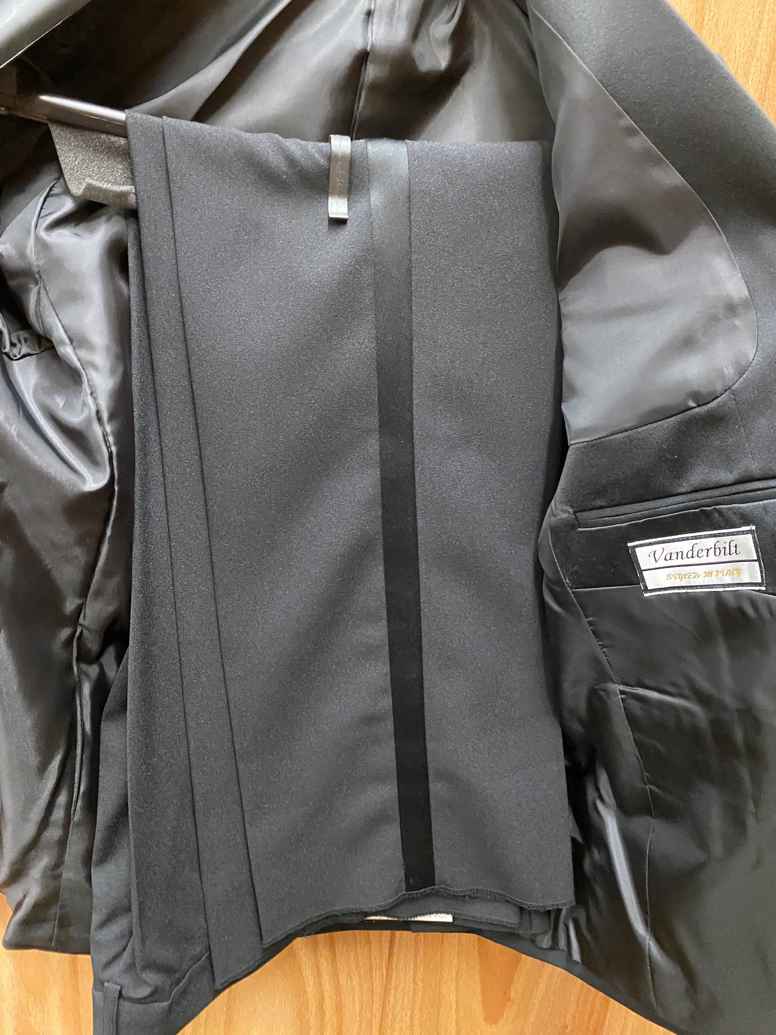 • tuxedo with satin striped pants