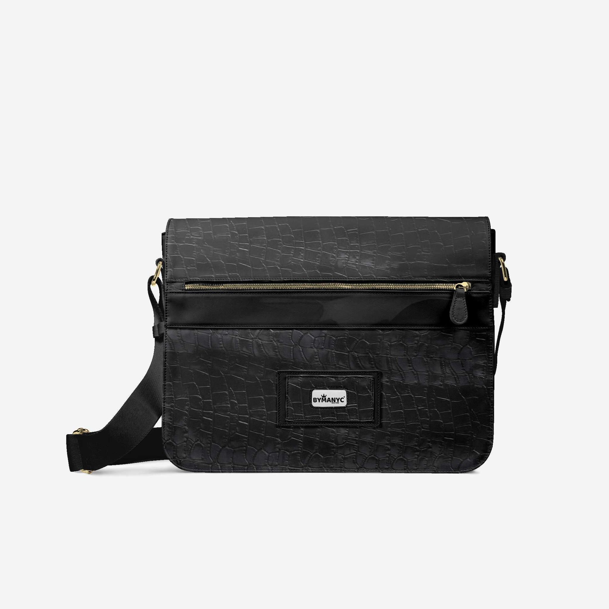 Designed for the city that never slows down, the Vegan Luxe City Messenger Bag 16” by BYMANYC ® New York is your new everyday power piece. Crafted by expert artisans in Italy, this messenger bag fuses street-smart aesthetics with sustainable luxury. The bold horizontal zipper, premium eco-tech vegan leather, and centered logo deliver a confident look that moves seamlessly from café to boardroom.