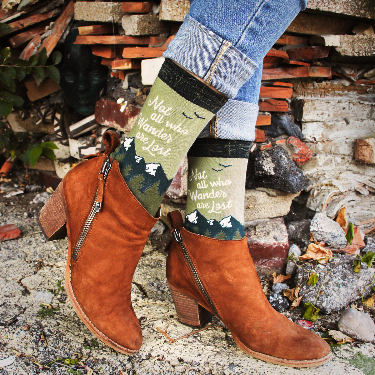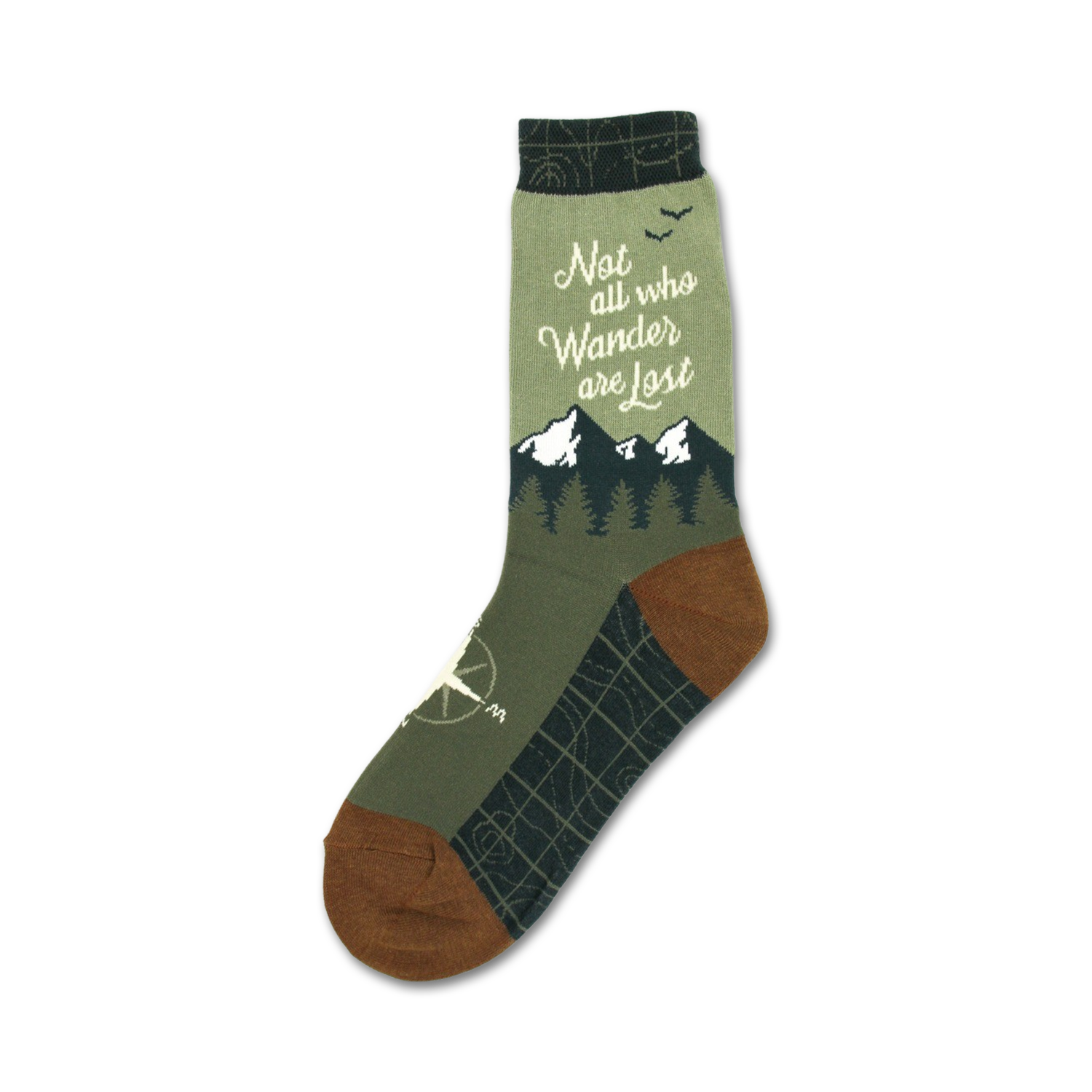 "The Wanderer" novelty socks are a thoughtful and pensive accessory for travelers and those who are searching for meaning in their lives. Featuring a map, compass, and mountains, these socks are a reminder that not all who wander are lost. Whether you're a seasoned globetrotter or just starting out on your journey of self-discovery, these socks are a perfect way to show off your love of adventure and your desire to find your way in the world. So go ahead and slip on a pair of "The Wanderer" socks, and let the journey begin.