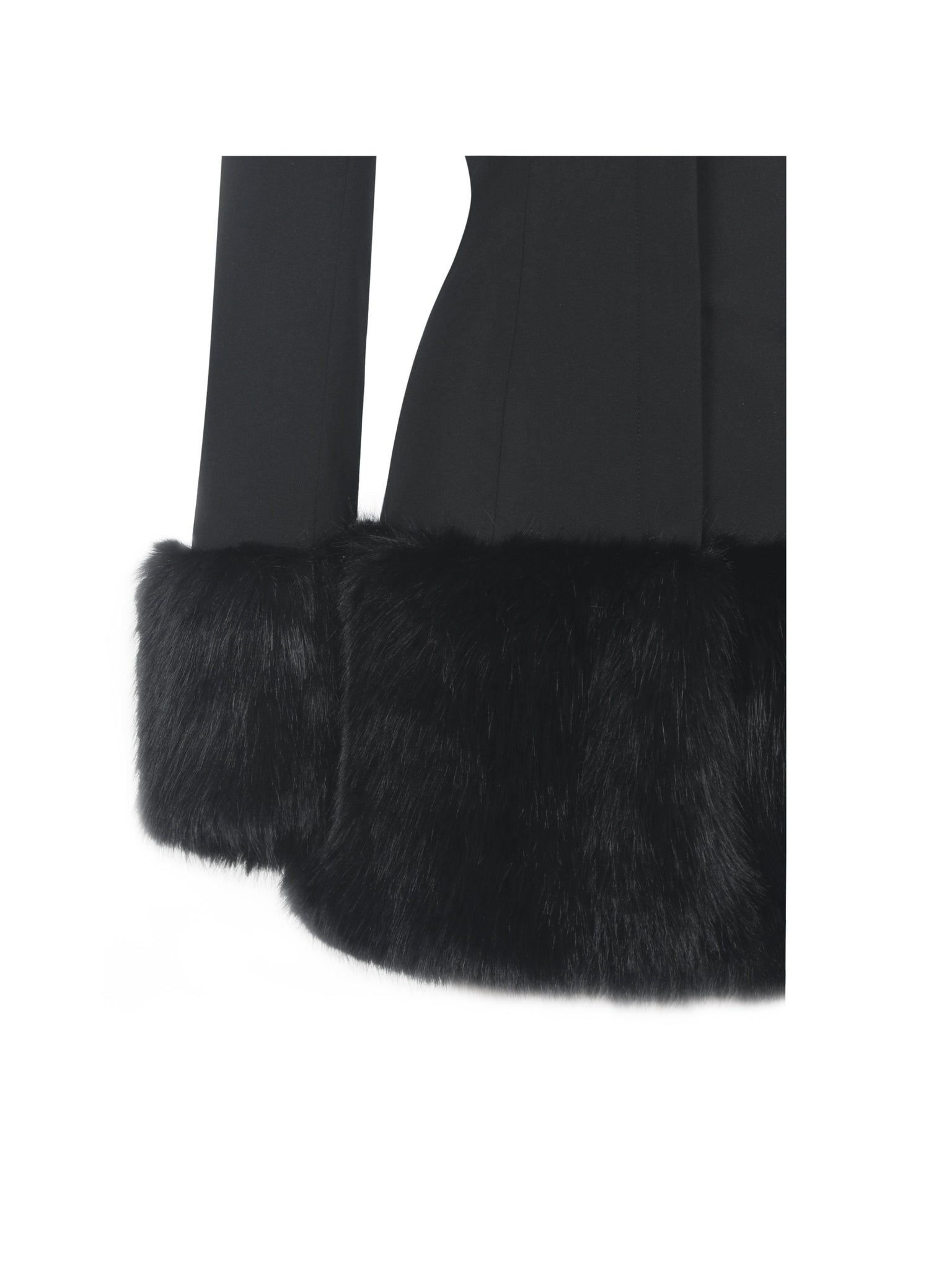 The Wenona Blazer is proof that power dressing can be playful. This black blazer mini dress is cut with strong shoulders and fully lined in satin for a smooth, luxe feel. A plush fur-trimmed hem and sleeves adds a wink of drama, while the invisible front zipper closure with snap details keeps it secure and sharp. It’s the perfect blend of tailored and daring — boardroom energy meets after-hours fun. Wear it for rooftop cocktails, chic gallery openings, or fall dinners when you want to look polished but not predictable.