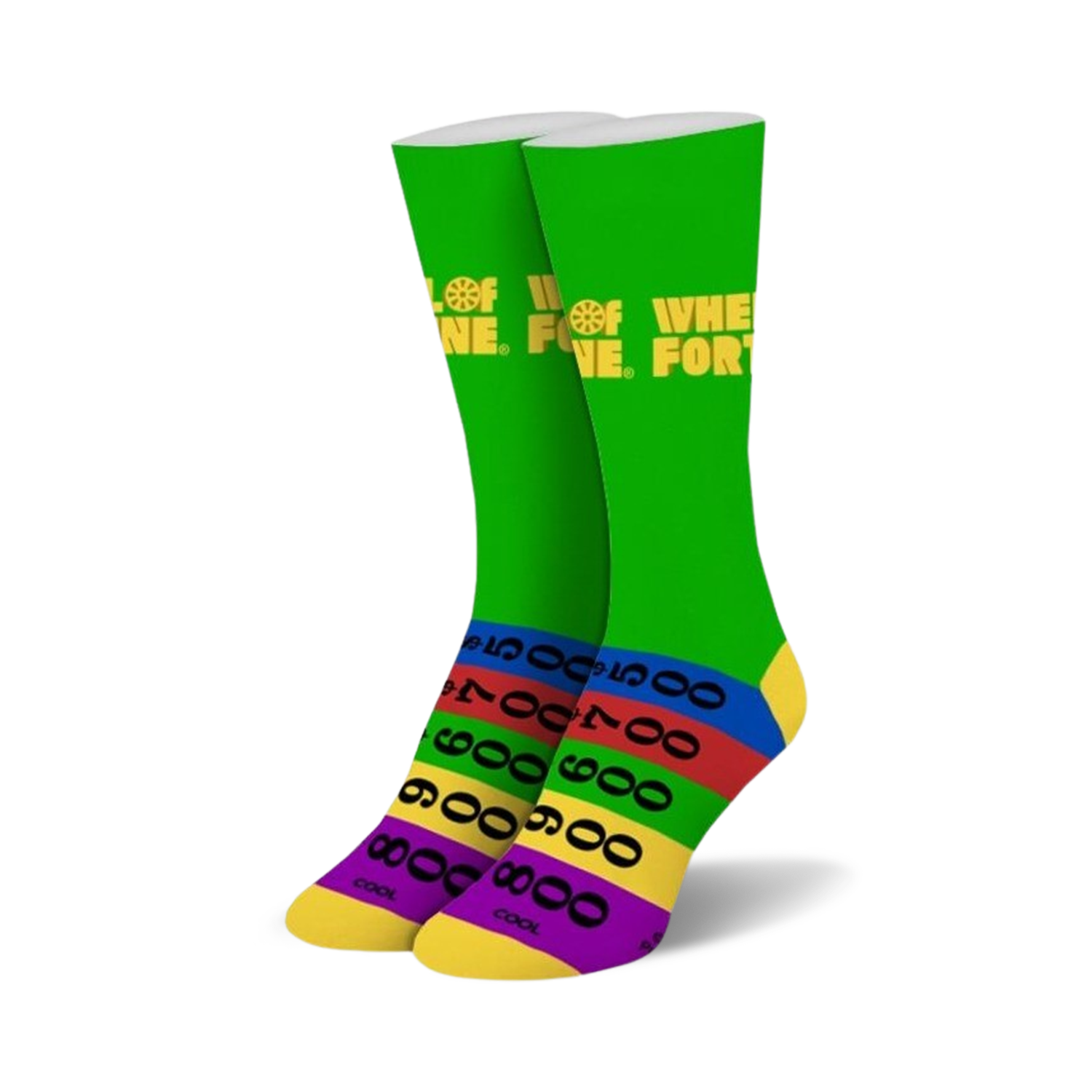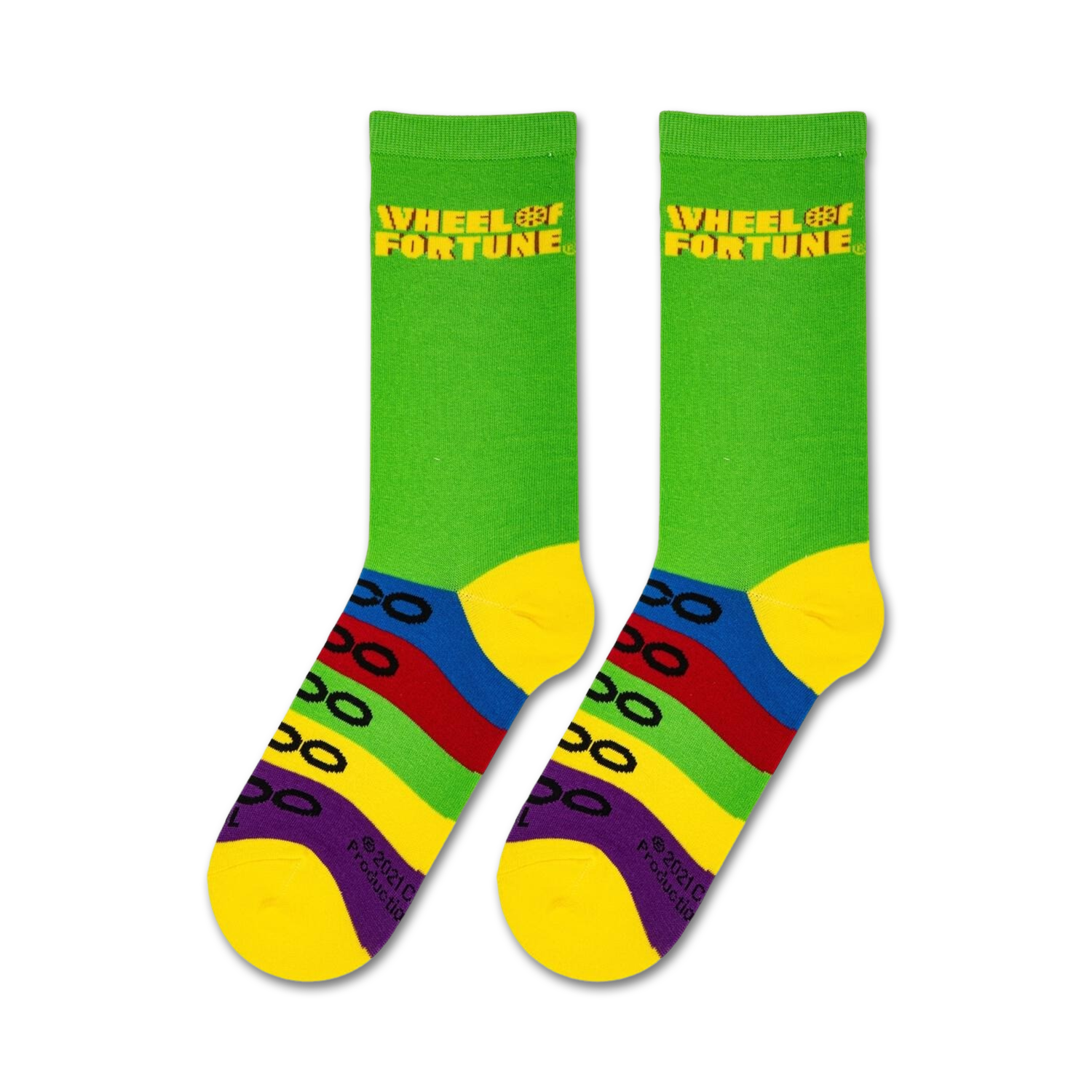 Spin the wheel of fortune and land on fashionable footwear with these vibrant Wheel of Fortune crew socks designed for women. With a backdrop of delightful green, these socks feature an array of colorful numbers and letters that dance around your feet like tiny acrobats. Slip into these cheerful companions and let your toes take center stage, stealing the show with every step.