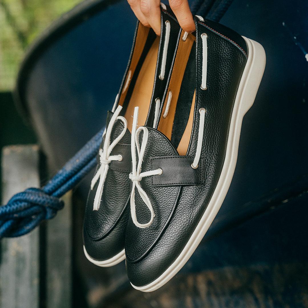 Meet The Barca Yacht Loafer - a nautical classic with a modern perspective. Inspired by sleek Italian design, our take on the traditional boat shoe is made for the well-dressed and well-traveled. The Barca is constructed from extra soft premium suede and pebbled leather that sits atop an anti-aged rubber sole for added comfort both on and off the water. Wet lace break on you? The Barca's lace construction is intentionally built to be easily replaced, setting it apart from any other boat shoe out there. Its sleek design is sharp enough to be worn with a suit, yet casual enough to toss on with a pair of shorts.