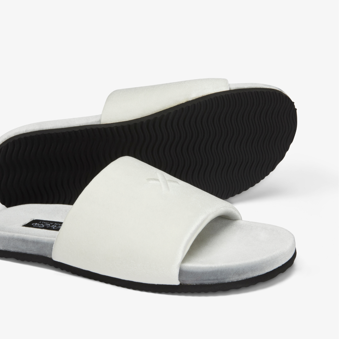 Constructed from the same premium velvet as our iconic Velvet Slipper, the House Slide takes in-home comfort and convenience to a new level. The upper band wears like a pillow for your feet and is complemented with a cushioned footbed for that “walking on clouds” feel. We use a lightweight thin rubber sole for durability and making running a quick errand easy. Work from home or lounge from home – the Velvet House Slide is