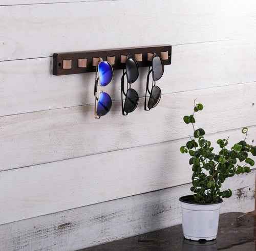 - 【EASY TO INSTALL】:The sunglasses rack has 2 ways to install: adhesive mounting and screw mounting.Peeling the adhesive backing that already applied to mount on the wall and it is super strong or you can mount with the included screws and anchors if needed